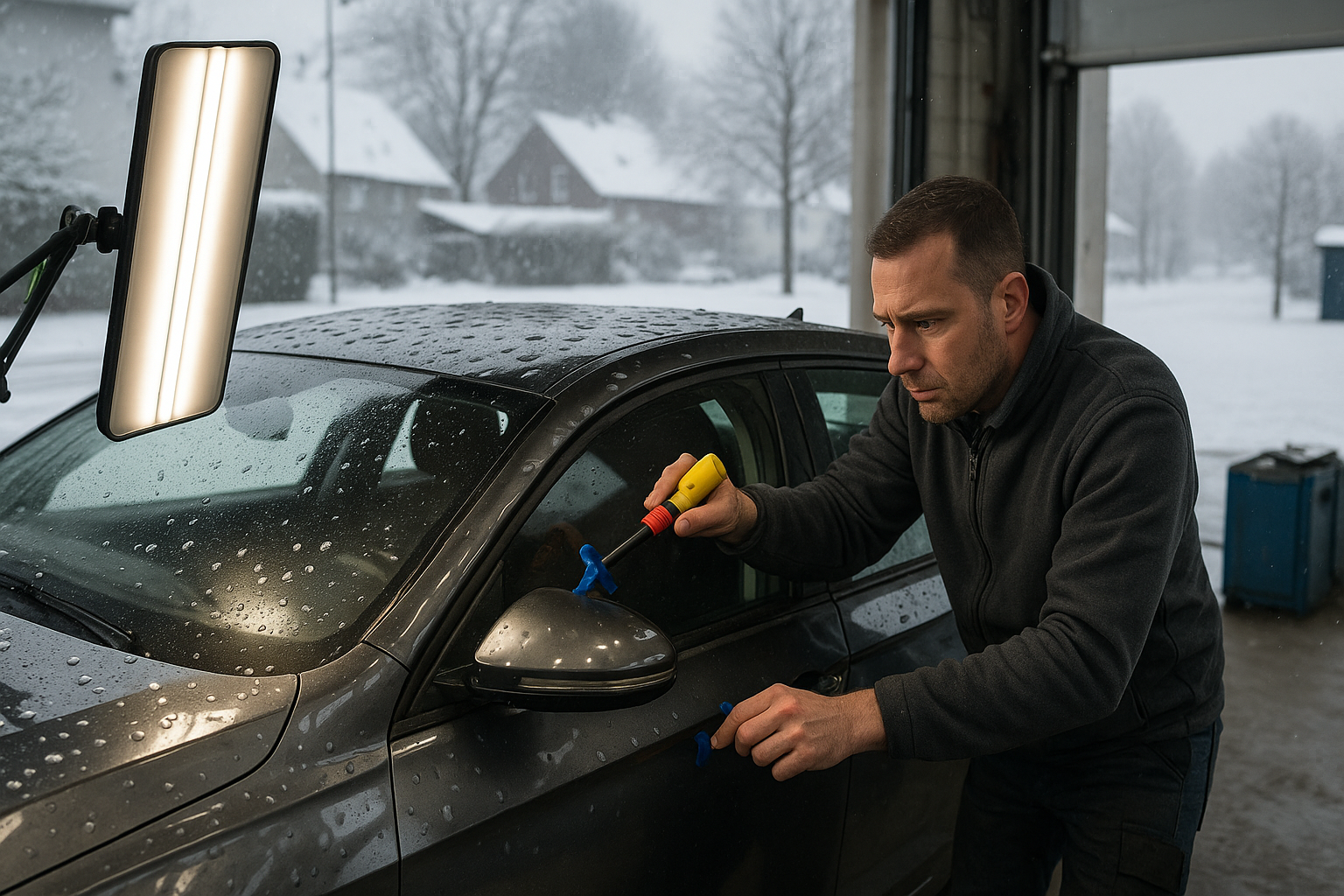 Winter/Hagelschäden im Februar: DoL-Dellenreparatur mit Klebetechnik und reibungsloser Versicherungsabwicklung im